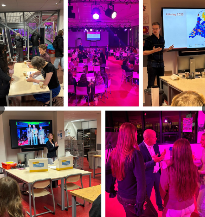Met meer dan 100 geïnteresseerde en enthousiaste leerlingen hebben we de exitpolls gevolgd. De uitslagen werden geduid door wethouder Gert-Jan Schotanus. De pubquiz over politiek, bezien vanuit geschiedenis, aardrijkskunde, economie en maatschappijleer, was toen al achter de rug.