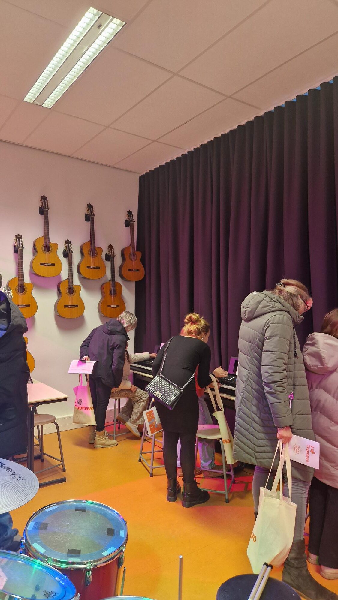 Vanmiddag en vanavond stonden de deuren van de Topmavo open om aankomende brugklassers met hun familie welkom te heten. Het was lekker druk. Overal in de school waren collega’s aanwezig om de kinderen enthousiast te maken voor hun vak. In de diverse lokalen kon je proefjes doen, meedoen aan een quiz of experiment, een spel spelen, koken en bakken, knutselen, sommen maken, enz. en gymmen in ons sportgebouw. Er was informatie over Remedial Teaching en van de ouderklankbordgroep. Je kon muziek maken, op de foto en rondwandelen in de wereld van mens en maatschappij.